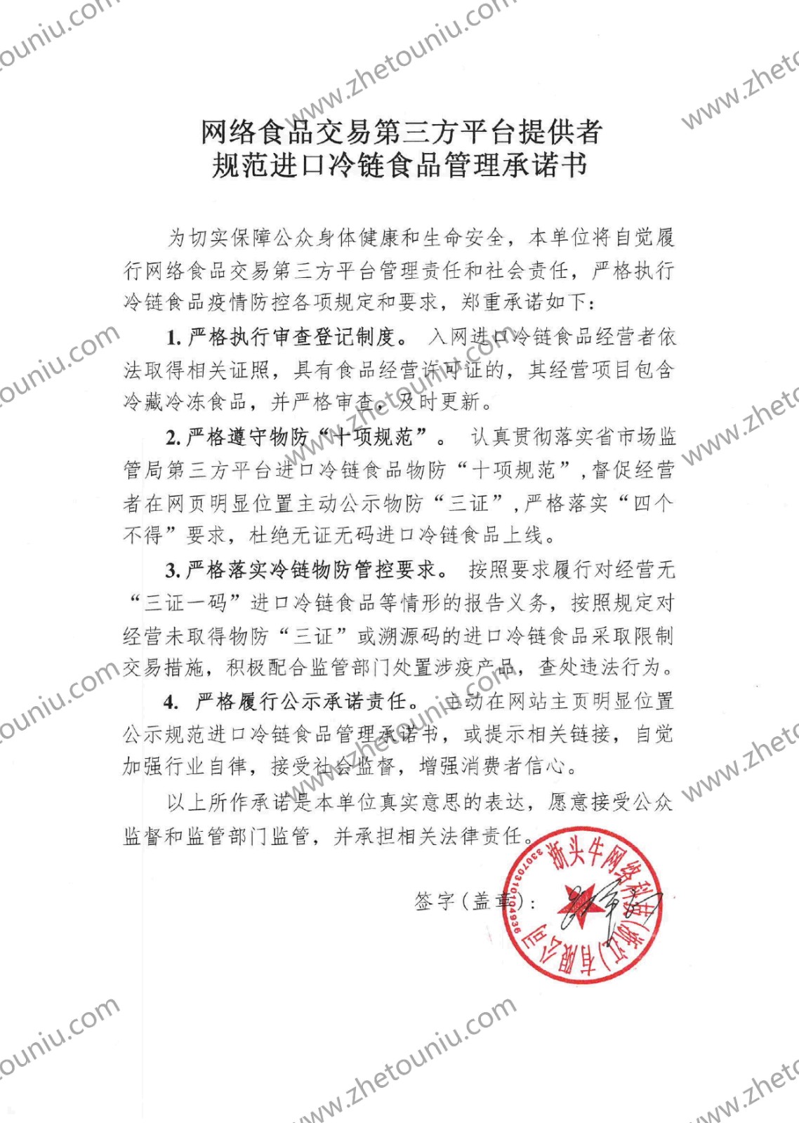 (c)2023浙頭牛 打造全球肉類凍品批發采購平臺 m.nsucurg.cn SYSTEM All Rights Reserved 浙頭牛網絡科技(浙江)有限公司 【平臺資質】【冷鏈食品管理承諾書】